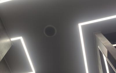 - Всё подключаем, тестируем, и затягиваем натяжным потолком.